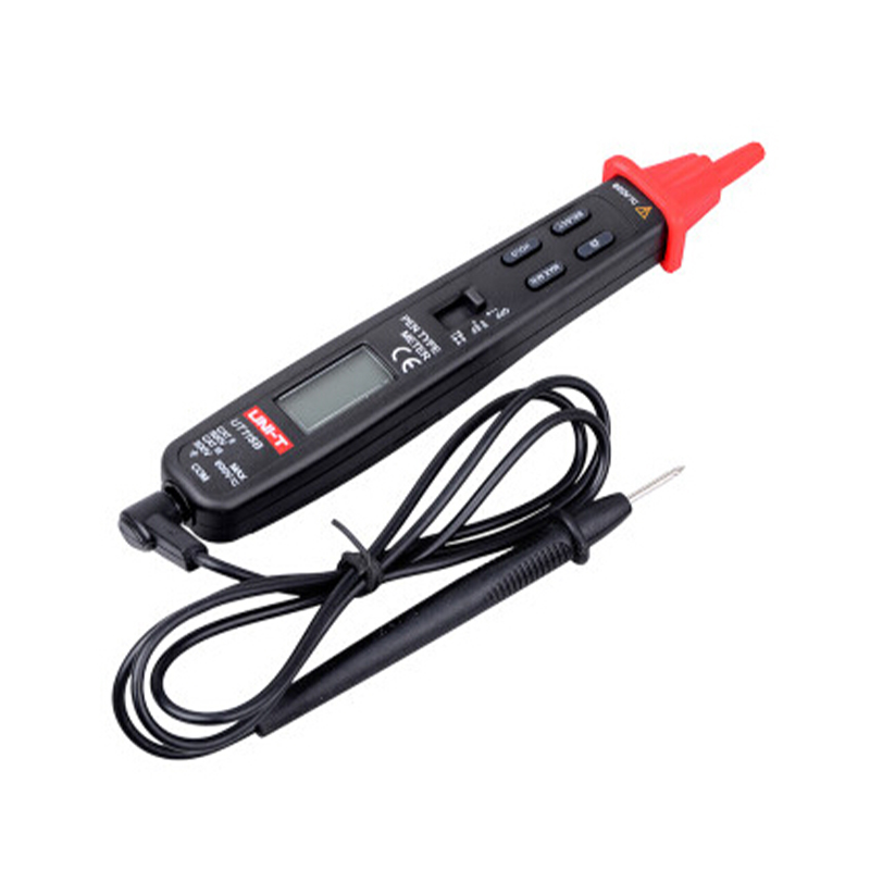 UT118系列筆式萬用表具有3000位計數功能,整機電路設計以專用高性能萬用表IC為核心,具有智能化、高精度、高性能之特點,能完成測量或測試;AC/DC(交流/直流)電壓、EF功能(UT118B型)、電阻、二極管、導通性、電容等參數。具有雙重絕緣保護。
