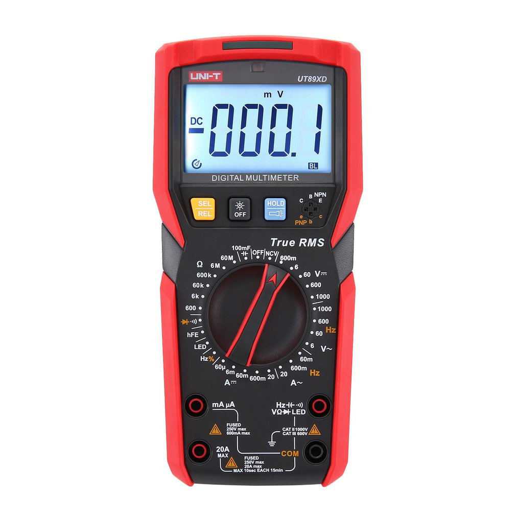 UT89X系列專業NCV數字式萬用表可解決客戶面臨的一個由來已久的問題 –– 如何快速精準區分零火線? UT89X系列根據檢測電壓的高低會呈現3種不同顏色的燈光提示,可用于精確區分零火線,具有相當高的泛用性。 UT89X具備可用于暖通空調系統檢測工作的溫度測量功能,UT89XD配備了LED發光二極管檢測功能,可對LED的使用情況進行檢測,診斷其好壞。 同時UT89X系列還具備傳統萬用表測量交直流電流電壓、電阻、二極管、三極管、電容、頻率、占空比等功能,功能齊全,性能穩定。