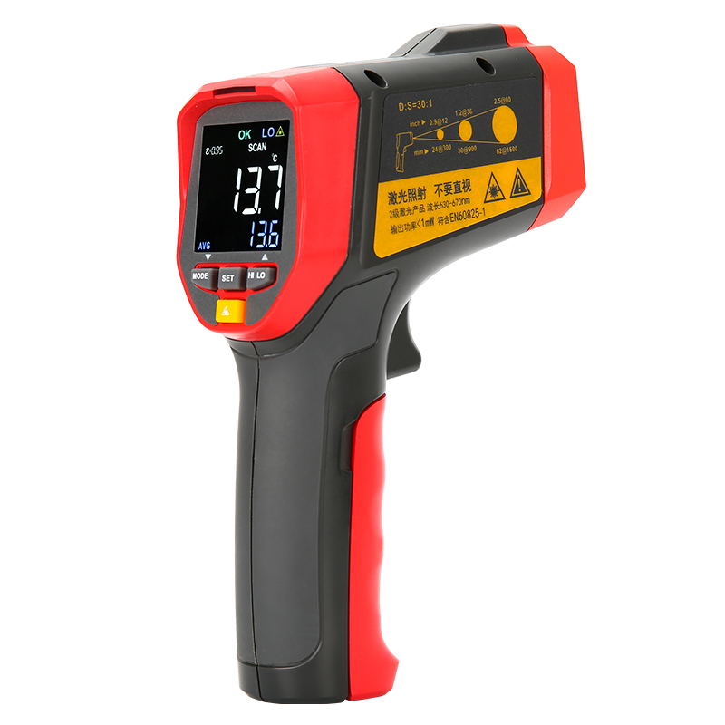 UT300A+系列一共有三款(UT301A+、UT302A+、UT303A+),最高測溫范圍達800℃,±1.5%的精度使滿足大部分用戶的測量需求。配備了高對比度EBTN彩屏、三色LED高低溫報警提示,具有最大值、最小值、平均值及差值顯示模式,具備CE認證。作為一款單激光紅外測溫儀,無論是精度還是功能都相當全面豪華,UT300A+系列,旨在為用戶提供更加舒適的產品體驗。