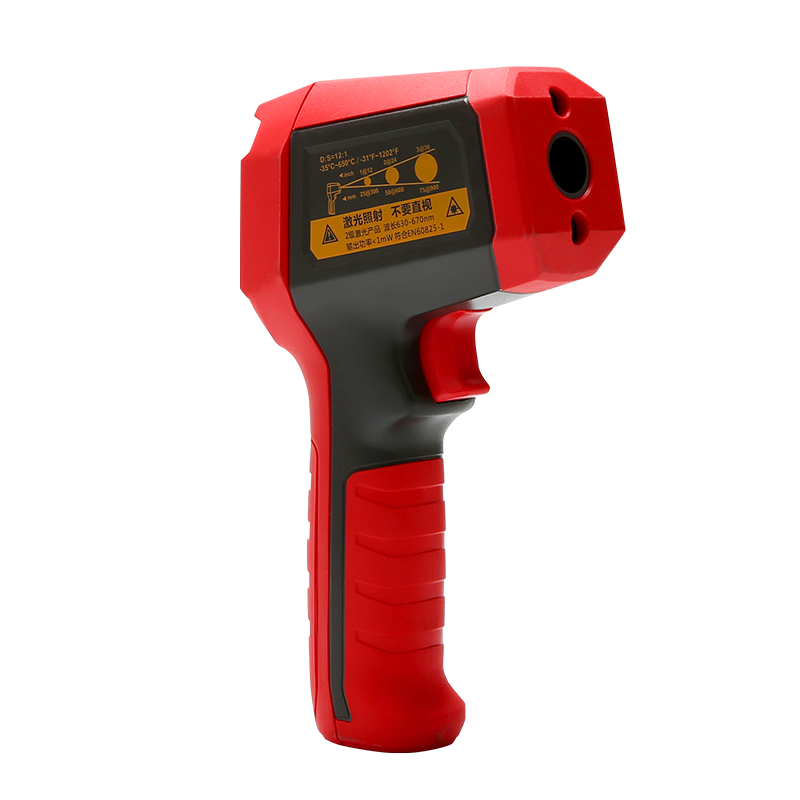 UT309D紅外測溫儀能以非接觸的方式獲取物體表面溫度,用戶可快速、輕松測量難以企及之處的溫度。 紅外測溫距離系數DS比為12:1,可在更安全距離處對較小目標實施測量。 新增20組溫度記錄點,可在測量過程中對測得溫度值進行存儲,以便測量結束后查看對比;配有EBTN顯示屏,負顯模式下不易反光,字體清晰,易于閱讀,在陽光下和室外看的更清楚;尺寸小巧,卻具備IP65級別防水防塵,通過3m跌落測試,是一款可隨身攜帶的工業規格高效測溫工具。