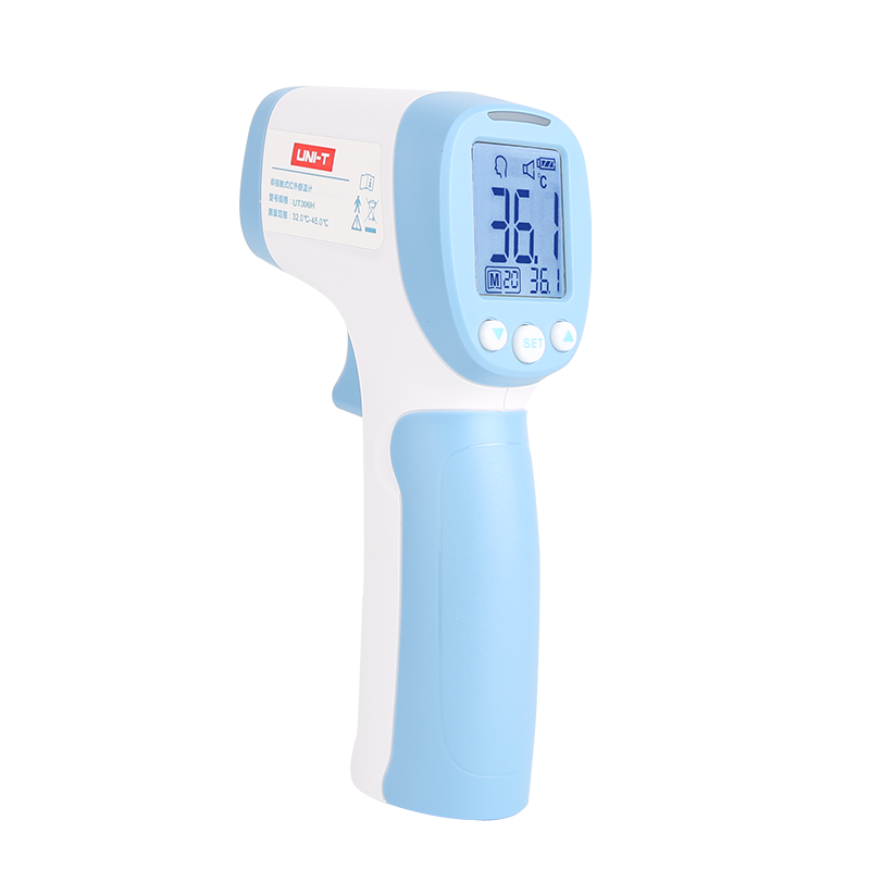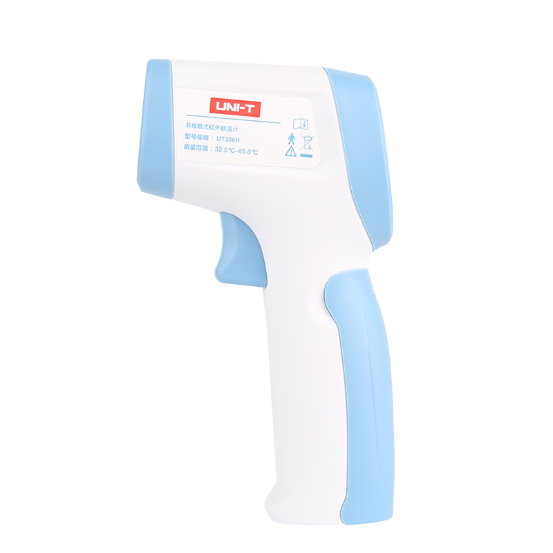 UT306H是一款非接觸式紅外額溫計。持有國家醫療器械注冊證(編號:粵械注準20202070831),具有使用簡單、快速響應、測量精準、安全可靠等性能優點,可廣泛適用于家庭、醫院、海關、企業等場所進行溫度篩查。 外觀時尚,符合人體工學設計,握持感舒適,同時輕巧便攜,居家外出兩不誤。該產品采用高性能紅傳感器,感應時間更快,測量精度更高。使用簡單,只需靠近即可一鍵測量,非接觸式可避免交叉感染更有安全保障。32℃~45℃體溫測量范圍,人體測溫+校準測溫兩種模式可自行切換,同時支持溫度單位選擇。LCD背光液晶顯示屏,測溫結果一目了然,適合5歲以上人群使用,另有超溫聲音警報及LED燈提示,幫您輕松掌握體溫數據,精準判斷是否出現溫度異常。 內置2節5號電池,外加15s無操作自動關機功能,續航更持久,電池更換也方便快捷