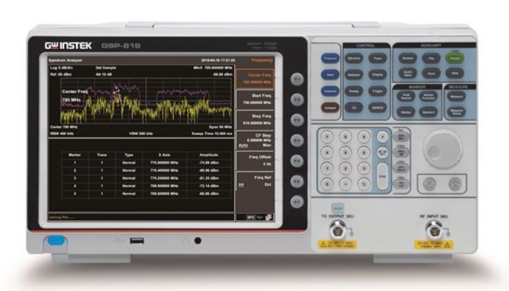 GSP-818頻譜分析儀提供 1.8GHz 頻寬、10英寸高分辨率 TFT LCD、USB 接口以及 VGA 輸出,滿足當前信息通訊學科的教學要求。直觀且高親和力的用戶操作界面,可以方便老師教學,也可讓學生快速的熟悉頻譜儀的各種基礎測量。老師們從此不必再為購買頻譜儀的預算而傷透腦筋。GSP-818的誕生,創造射頻需求領域1.8GHz 教學頻譜儀的高性價比,讓老師購買頻譜儀像示波器一樣容易。GSP-818搭配 GRF-1300A可以做基帶波形基本測量、不同基帶波形與其諧波的測量、射頻載波的測量、ASK/AM 信號的測量、FSK/FM 信號的測量、通訊系統的診斷與測量、頻譜儀在通訊系統中的測量、通訊產品的測量、射頻發射機等實驗,此外還可以對各類通信的射頻信號進行測量;藍牙、物聯網的射頻信號測量;可使用限制線功能做 Go/NoGo測試;AM/FM 測量;WIFI、Zigbee的射頻信號測量;ACPR/OCBW/N-dB 測量等這些測試都可以由 GSP-818輕松完成。