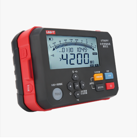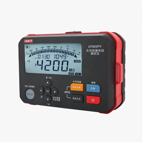 UT503PV具有測量光伏帶電(最大1000V 直流)絕緣電阻功能 (PV) 、普通絕緣電阻功能(非帶電)、交直流電壓自動識別測量功能、無需光伏太陽能板停電/短路/晚上均可進行光伏絕緣電阻測量、電壓步進、藍牙傳輸、自動放電、高壓帶電警示、遙控表筆操作測試等功能。本產品常應用于光伏發電面板、電池儲能、新能源汽車等設備的絕緣電阻測試
