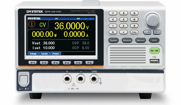GPP可編程直流電源系列推出兩款360W機(jī)型,即36V/10A GPP-3610H和72V/5A GPP-7250。GPP-3610H提供了高編程分辨率(1mV/0.2mA)和回讀分辨率(0.1mV/0.2mA);GPP-7250提供了高編程分辨率(2mV/0.2mA)和回讀分辨率(0.1mV/0.1mA),和更佳的低紋波噪聲特性≤1mVrms(5Hz~1MHz)/≤2mArms和輸出瞬態(tài)恢復(fù)能力≤100us。